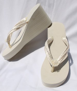 High Ivory Wedge Bridal Flip Flops with Pearls and Organza Flower Review
