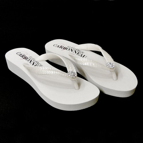"Buy White Size 10 - Low Heel - Breeze Bridal Flip Flop Wedding Sandal with Sequins and Rhinestones" Overview