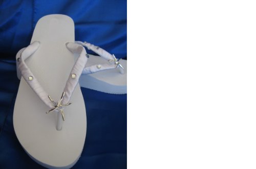 White Wedge Bridal Flip Flops Sandals with Silver Starfish and Rhinestones Size 9 Review